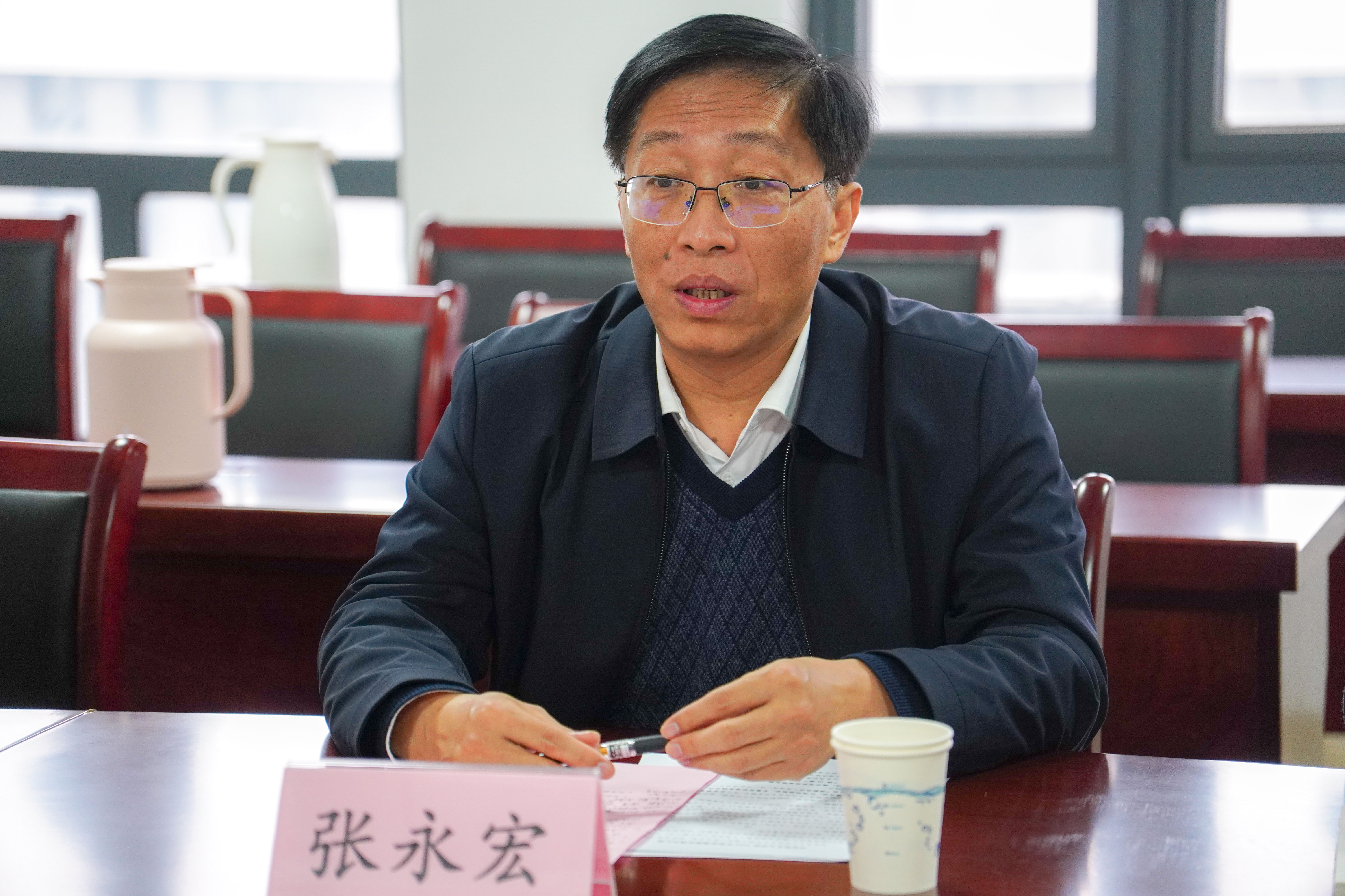 为全面深入学习习近平总书记对学校思政课建设作出的重要指示精神,不断开创学校新时代思政教育新局面,12月10日,学校思政课建设专题座谈会在马克思主义学院会议室召开,围绕进一步加强思政课建设、推动新时代马克思主义学院高质量发展进行专题研究部署。校党委副书记、校长张永宏、副校长曹广喜、教务处处长钱承山、校长办公室副主任李沛武参加会议。会议由副校长曹广喜主持。马克思主义学院副院长沈妉、党总支副书记王琳琳和教师代表出席会议。
