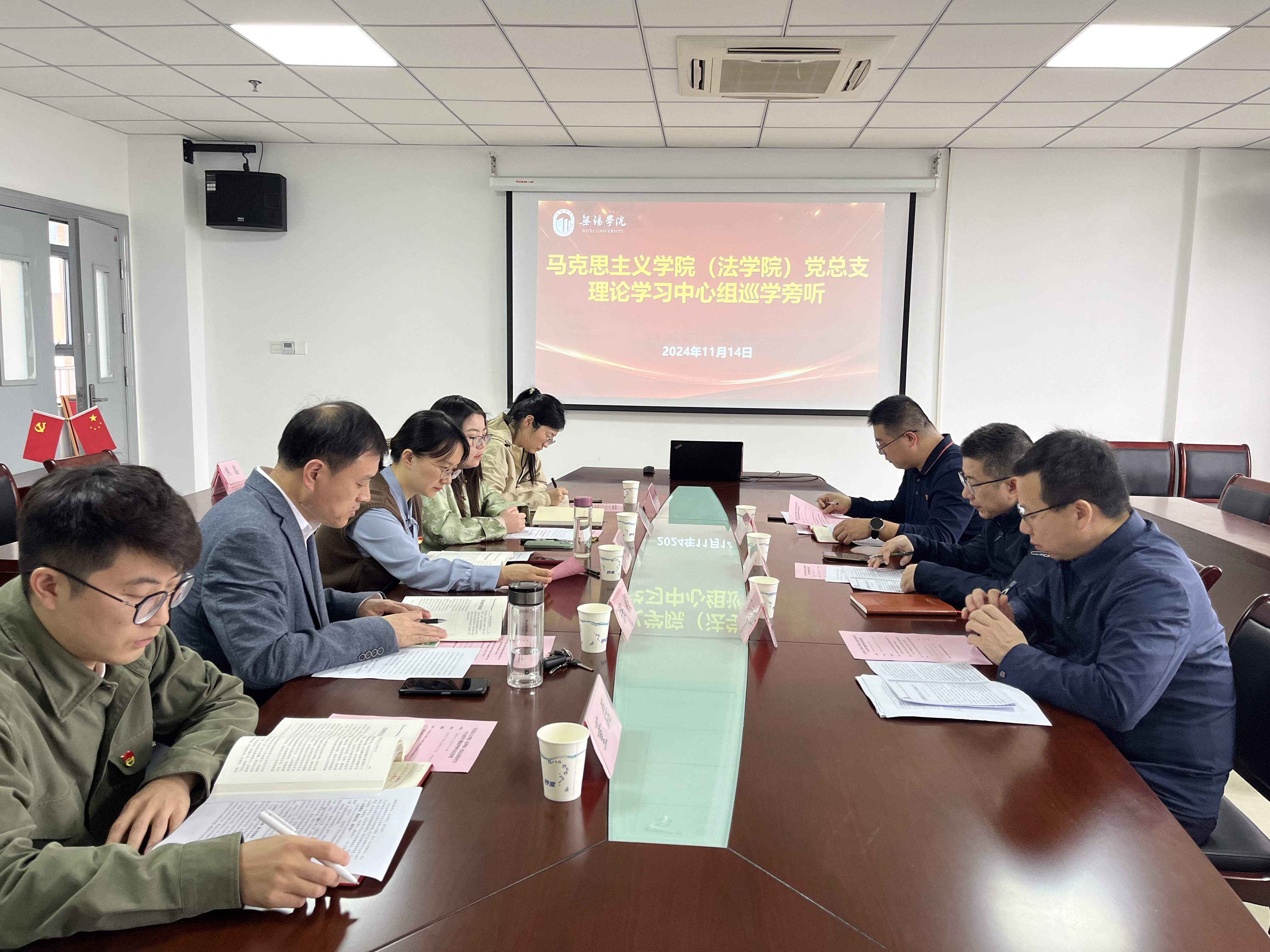 11月14日下午,马克思主义学院(法学院)党总支在尚真楼511会议室召开学院党总支理论学习中心组学习会,专题学习习近平同志《论教育》。副校长徐军海莅临马克思主义学院(法学院)党总支巡学旁听并作现场点评,发展规划处处长齐运锋、信息化建设与管理中心副主任夏庆锋陪同参加。会议由学院党总支副书记王琳琳主持。