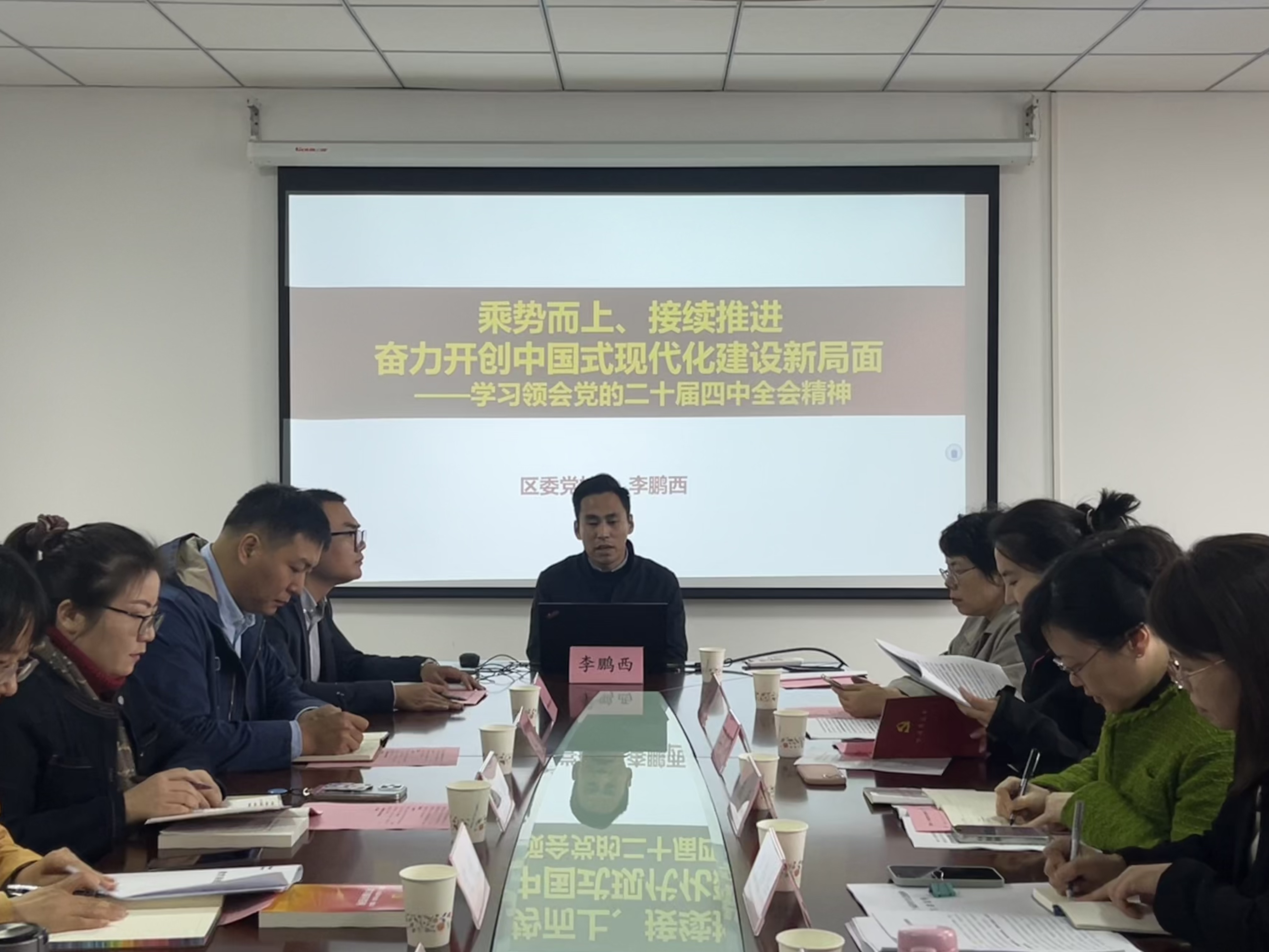 会上,锡山区委党校李鹏西老师围绕“乘势而上、接续推进,奋力开创中国式现代化建设新局面”主题,向大家系统解读全会精神,他围绕全会对“十五五”时期的战略定位,深入阐释了中国式现代化的核心要义与实践要求。随后,学院焦鑫老师聚焦“十五五”规划建议,简短提炼战略要点,提出要及时全面把全会精神融入思政课教学全过程,切实提升课堂教学质效。