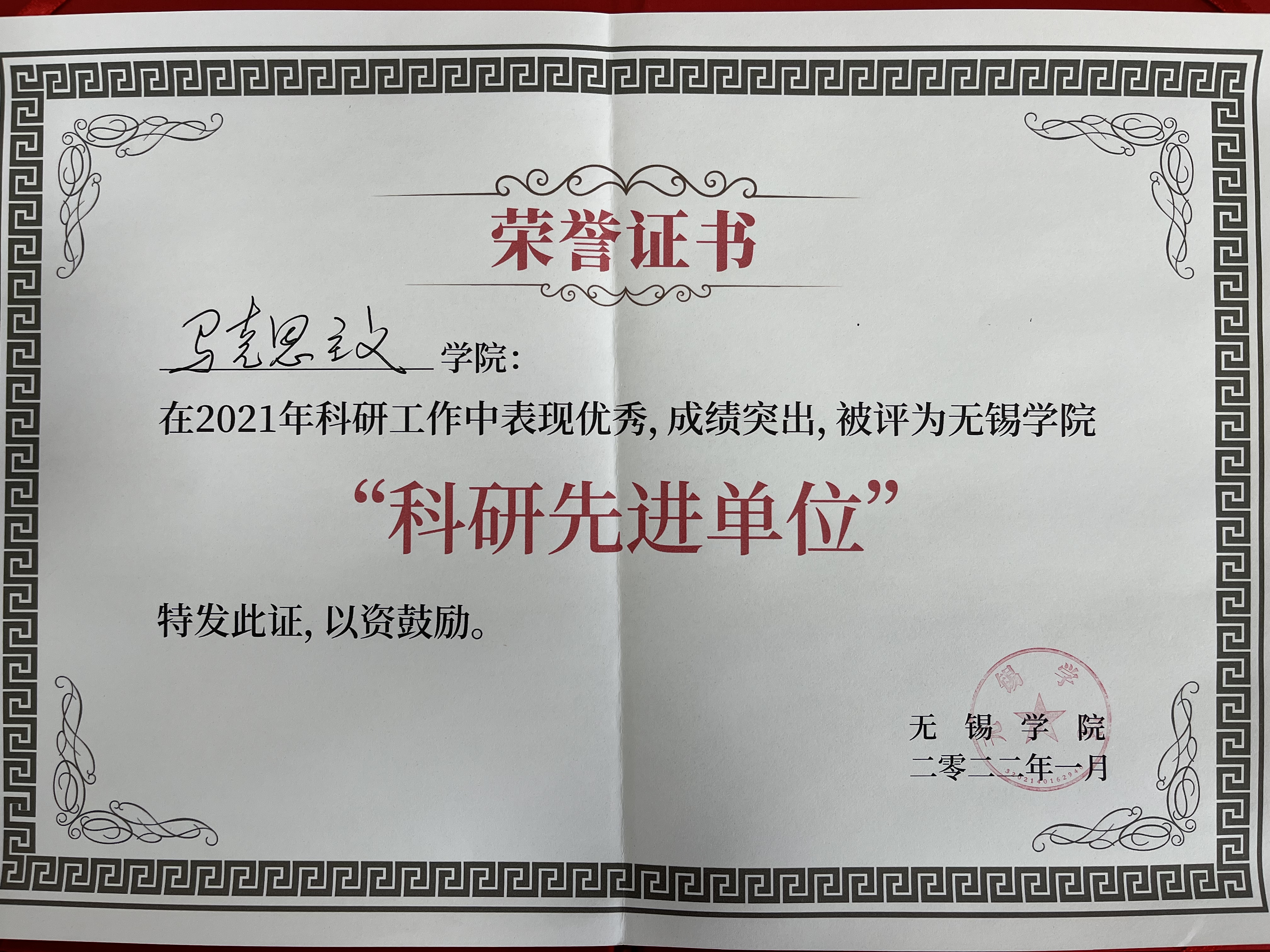 科研强院,夯实学科建设。培育科研氛围,积极组织开展学术会议,动员全院教师学习交流,提升理论基础和科研能力。自学院成立以来,共获得市厅级以上项目10多项,其中获教育部项目1项,江苏高校哲学社会科学等市厅级项目6项;发表学术论文30多篇,其中包括《河海大学学报》、《学术交流》等核心期刊10余篇。学院荣获2021年“科研先进单位”称号。