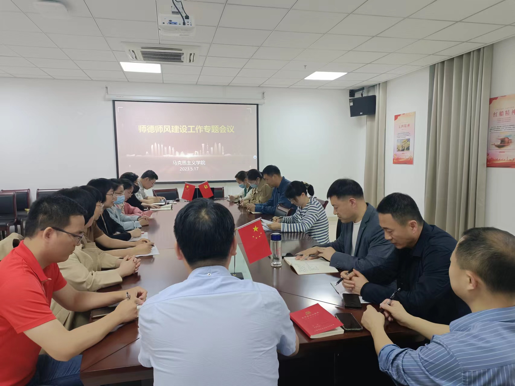 为推动学习贯彻习近平新时代中国特色社会主义思想主题教育走深走实,落实习近平总书记关于师德师风重要指示精神,加强学院师德师风建设。5月17日下午,马克思主义学院在尚真楼110会议室召开师德师风专题教育会。
