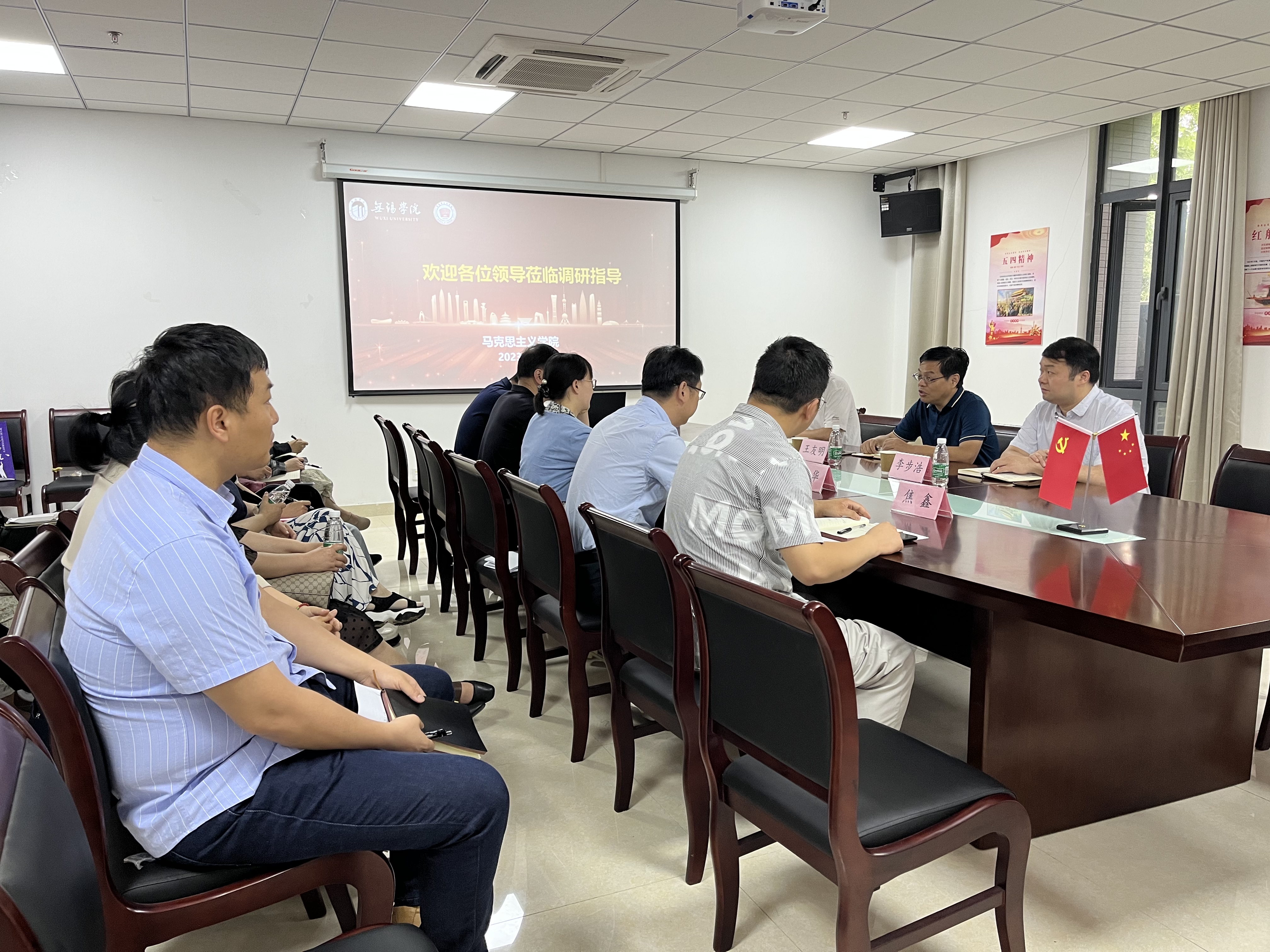 6月13日上午,校纪委书记王友明带队来马克思主义学院开展调研指导工作。马克思主义学院副院长沈妉、院长助理张毅、形势与政策教研室主任瞿华、教工党支部书记曲文涛及教师代表参加调研,校纪委副书记李步浩、纪委办公室助理朱向阳陪同调研。