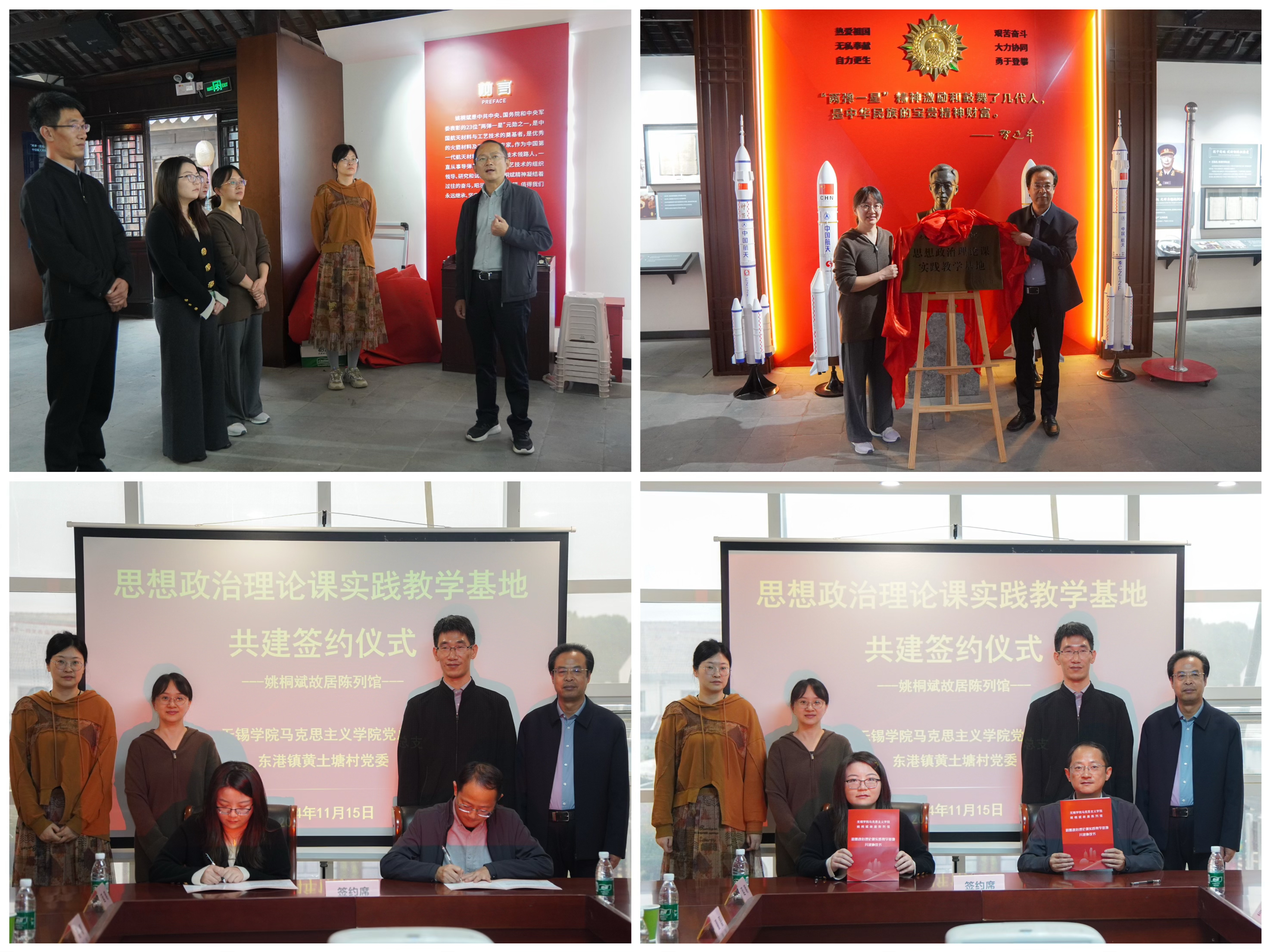 为深入学习宣传贯彻党的二十大精神,落实习近平总书记关于大思政课的重要指示批示精神,11月15日下午,马克思主义学院(法学院)副院长沈妉、党总支副书记王琳琳带队一行前往东港镇姚桐斌故居举行“大思政课”实践教学基地揭牌暨共建签约仪式,黄土塘村党委书记蒋红江、镇党委委员缪涛一行主持仪式。