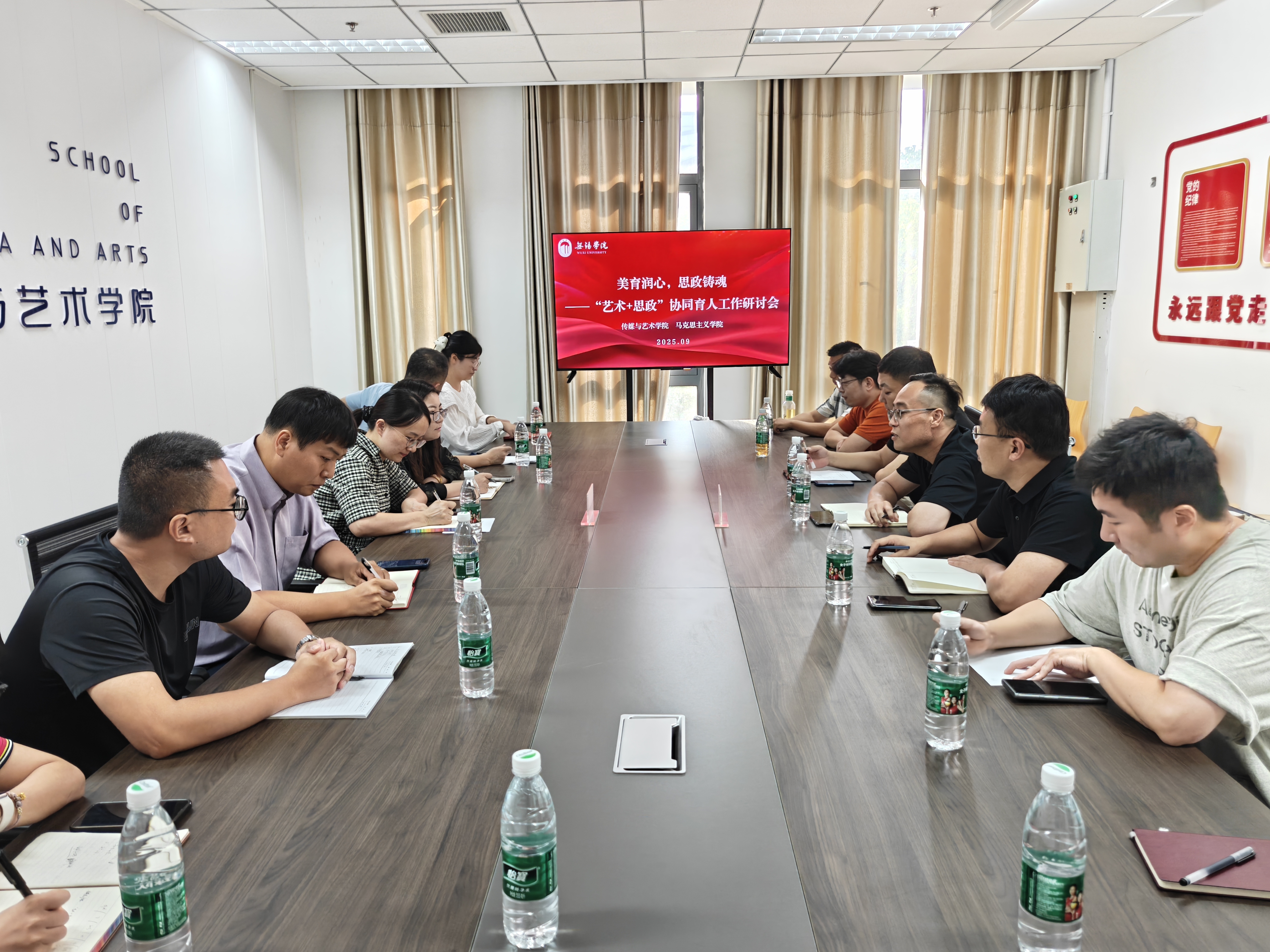 为探索“艺术+思政”协同育人新路径,深化思政教学改革,充分发挥学科融合优势,9月15日下午,传媒与艺术学院和马克思主义学院于尚诚楼202会议室联合召开美育润心思政铸魂——“艺术+思政”协同育人工作研讨会。传媒与艺术学院副院长刘棠、党总支副书记郭新宇、马克思主义学院副院长沈妉、党总支副书记王琳琳及双方学院教研室主任和教师代表参会。