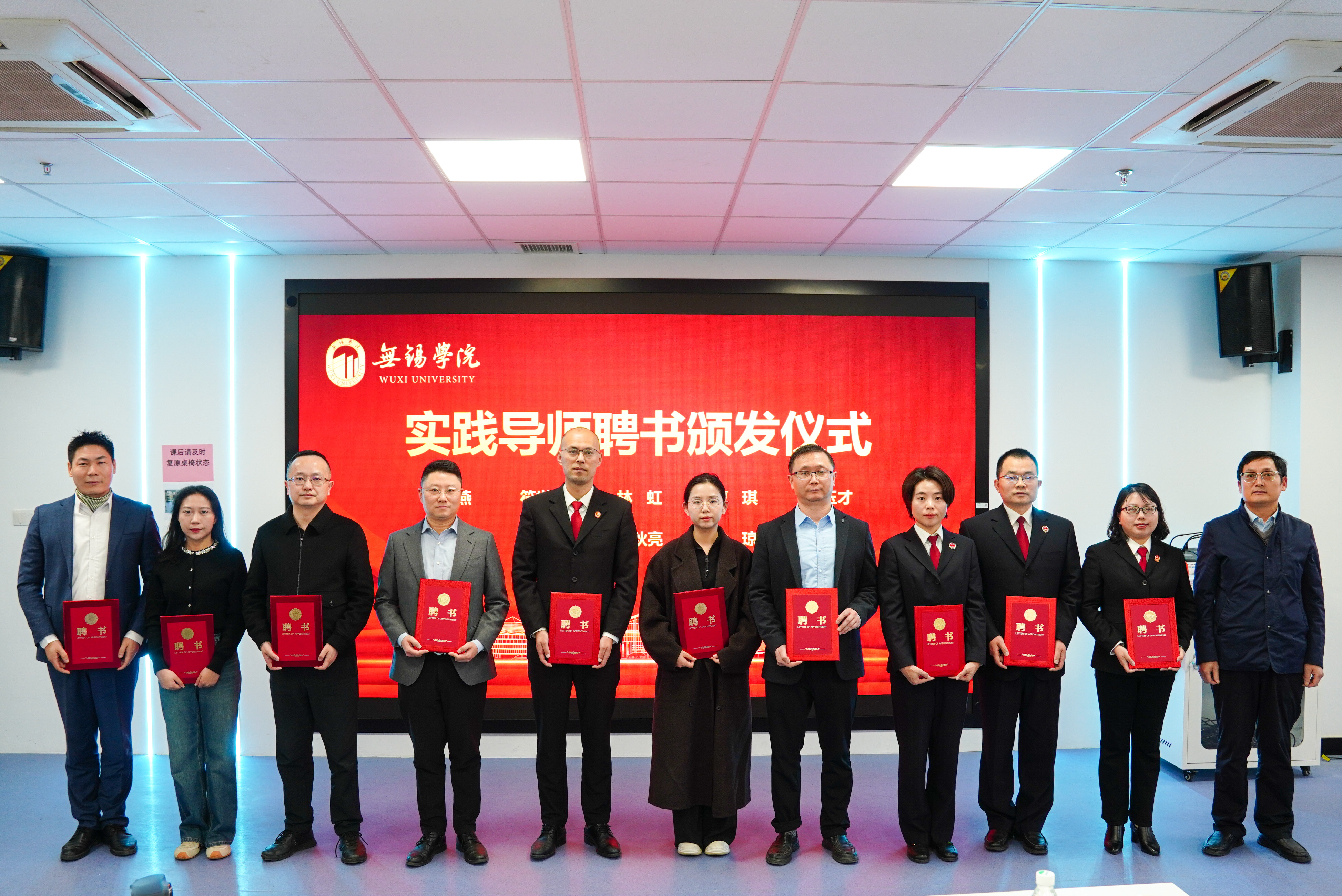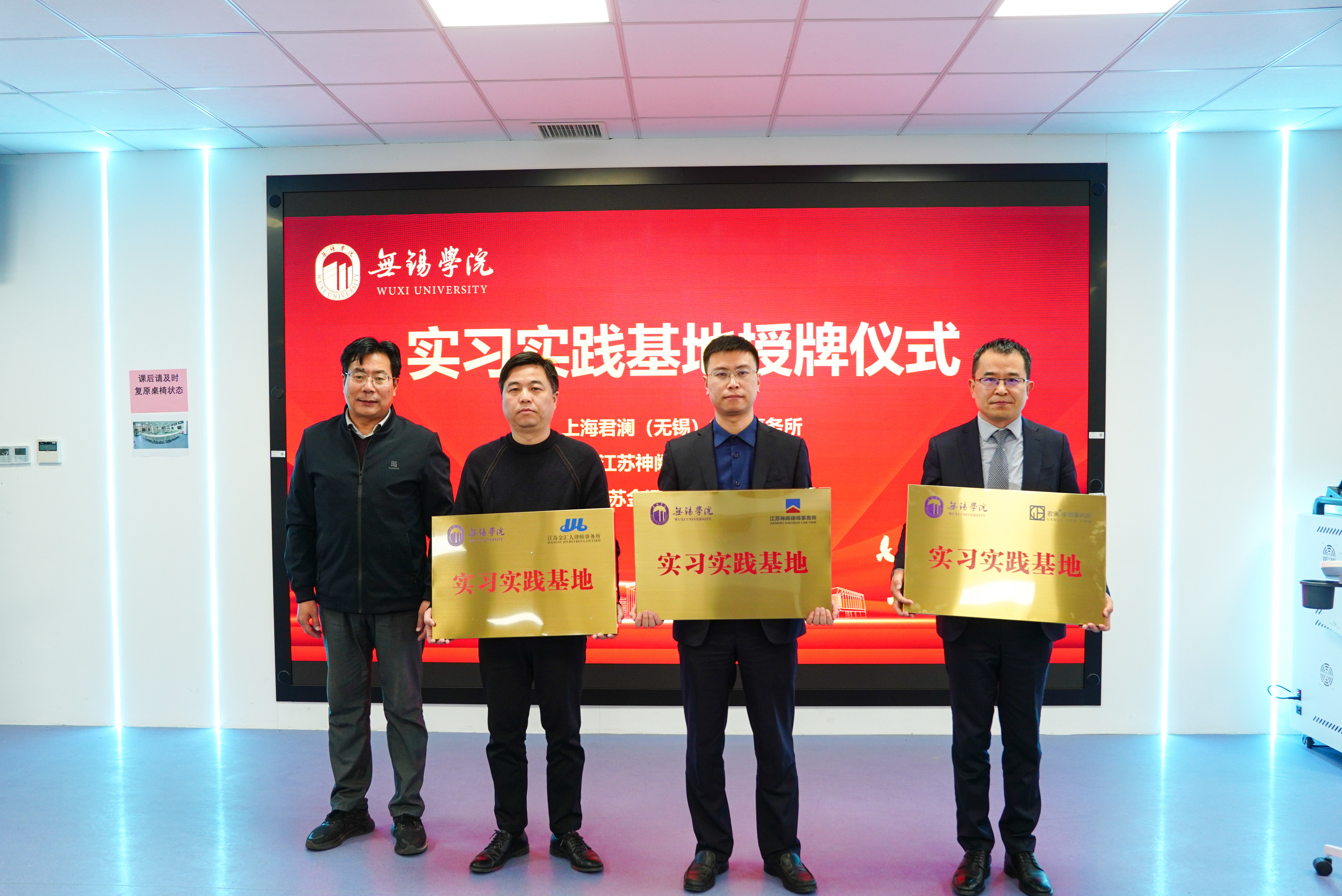 教务处处长钱承山为上海君澜(无锡)律师事务所、江苏神阙律师事务所、江苏金汇人律师事务所等新增校外实践基地单位授牌。教师发展与教学评估中心主任陈玉林为来自无锡市法律实务界的20位优秀法律实务人才颁发实践导师聘书。
