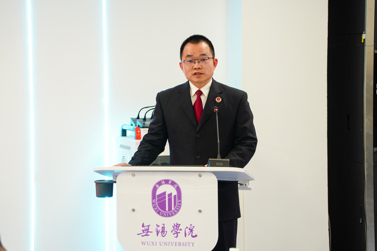 无锡市中级人民法院刑二庭庭长楼炯燕、市人民检察院公益诉讼检察部主任符世锋,作为实践导师代表先后发言,表示将为学生搭建“学用转化”的桥梁,助力学生积累实践经验、提升职业素养。