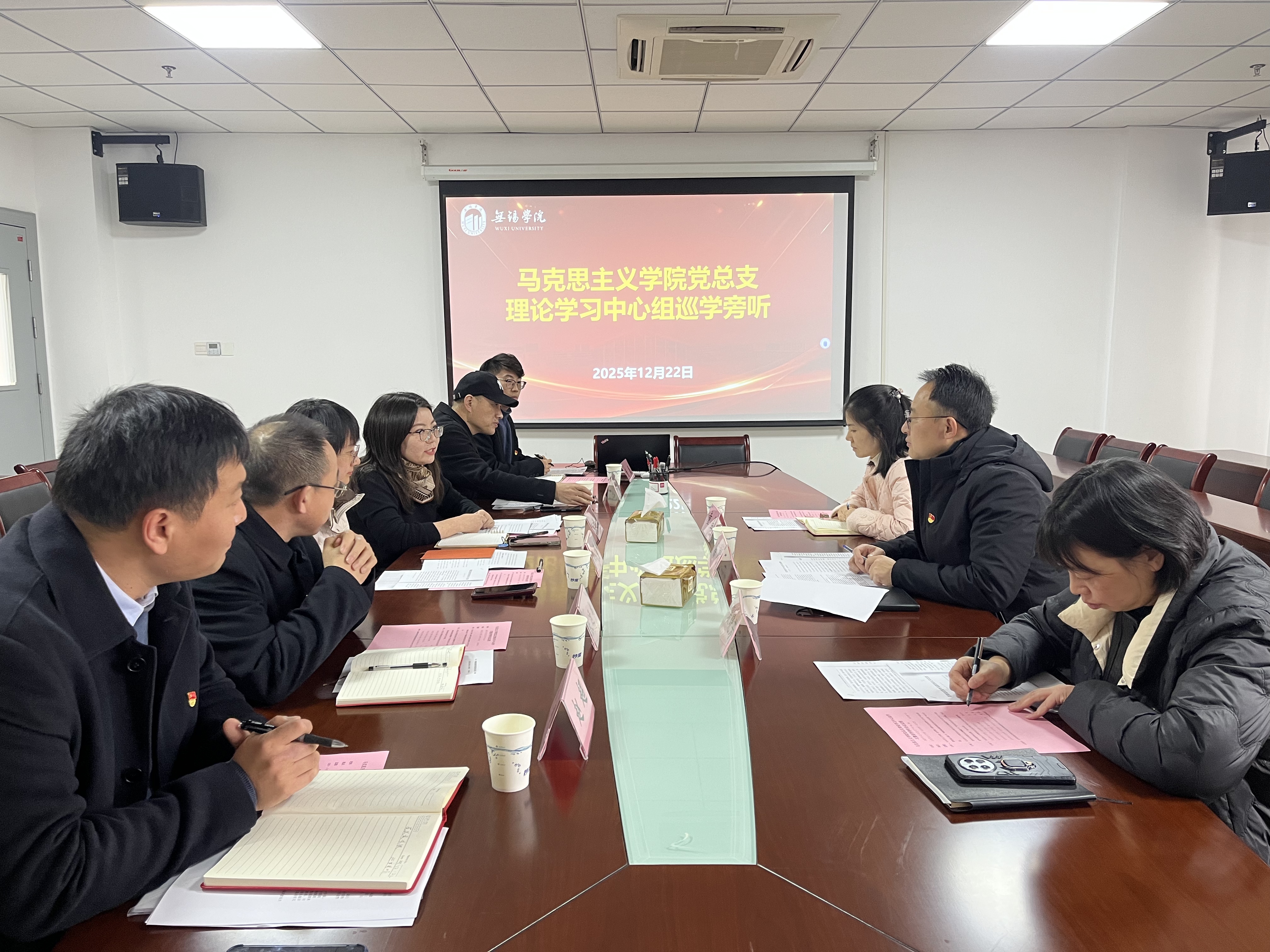 12月22日下午,马克思主义学院党总支在尚真楼511会议室召开学院党总支理论学习中心组学习会,专题学习《习近平谈治国理政第五卷》及《习近平关于加强党的作风建设论述摘编》中相关内容,聚焦教育强国建设与党的作风建设,凝聚育人共识。党委常委、组织部部长、统战部部长徐刚莅临马克思主义学院党总支巡学旁听并作现场点评,教务处副处长裴晓芳、人力资源处副处长童星陪同参加。会议由学院党总支副书记王琳琳主持。