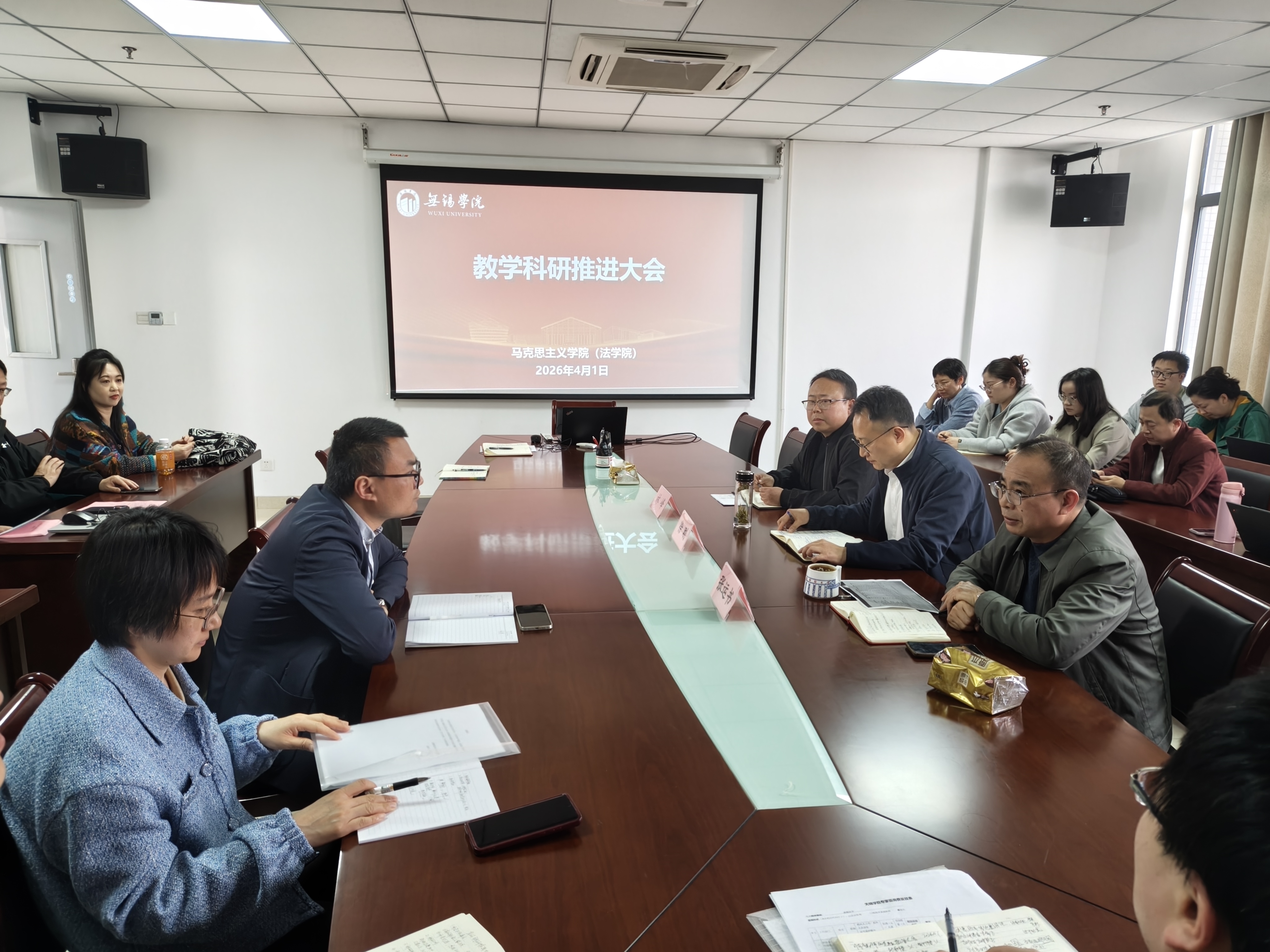 4月1日下午,马克思主义学院(法学院)在学院会议室召开教学科研工作推进大会,全院教职工参会。会议紧扣立德树人根本任务,聚焦教学提质、科研攻坚、内涵建设,系统部署本学期核心工作,为学院高质量发展明晰路径、凝聚合力。学院副院长张运书、党总支副书记林峰分别作工作部署,党委常委、组织部部长、统战部部长徐刚作总结讲话。