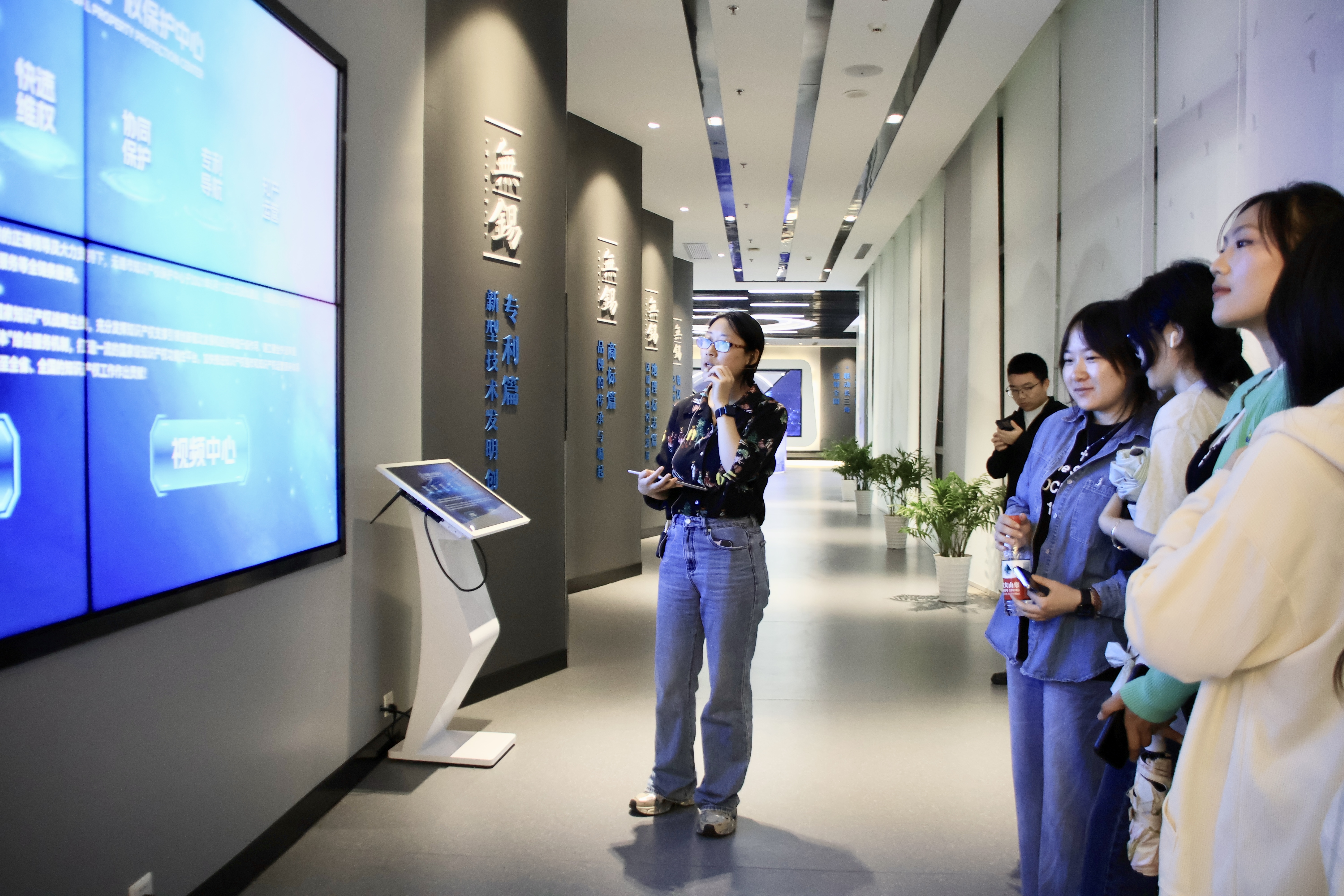 在讲解员的引导下,同学们参观了无锡知识产权文化传播中心。通过生动的视频演示和丰富的实物陈列,同学们沿着历史脉络,清晰地看到了无锡经济发展的轨迹、深厚的历史文化底蕴,以及多年来无锡在知识产权领域取得的辉煌发展成果。在商标注册展区,非遗传承锡绣、百年品牌 “王兴记” 等极具本土特色的品牌格外引人注目,它们不仅是无锡商业文化的代表,更彰显了知识产权保护在传承和发展本土品牌中的重要作用;在专利申请展区,一项项凝聚着创新智慧的专利,如同一面面旗帜,展现着 “无锡智造” 的蓬勃活力与耀眼的智慧光芒;在成果展示区,详实的案例展示与系统演示相互配合,让同学们真切地感受到,那些看似抽象的知识产权保护措施,正如同坚实的盾牌,默默守护着每一个创新梦想的孕育与绽放。