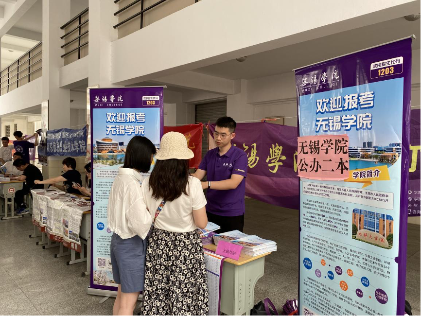 无锡学院扬州地区市区招生宣传小组由谭东峰副院长和分团委书记王琳琳老师带队,广泛宣传学院发展概况、专业特色、设施规模、学科师资、办学特色和优势,吸引了优质生源。