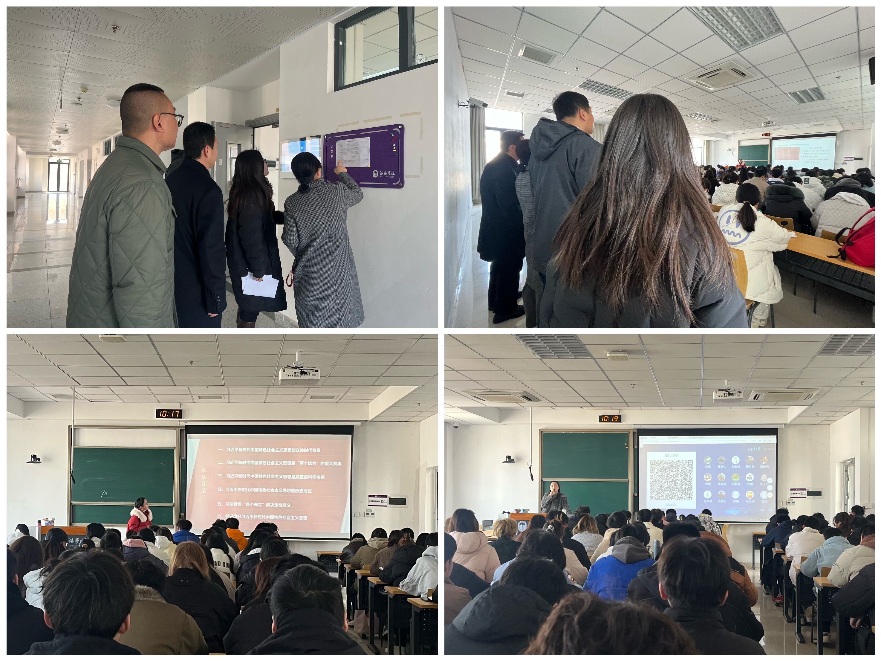 为加强学院教学质量监控,促进院风、教风、学风建设,2月24日,马克思主义学院(法学院)主要负责领导深入教学一线,对开学首日思政课和法学课堂教学情况进行了全面而细致的检查,并明确了对课堂教学的新要求。