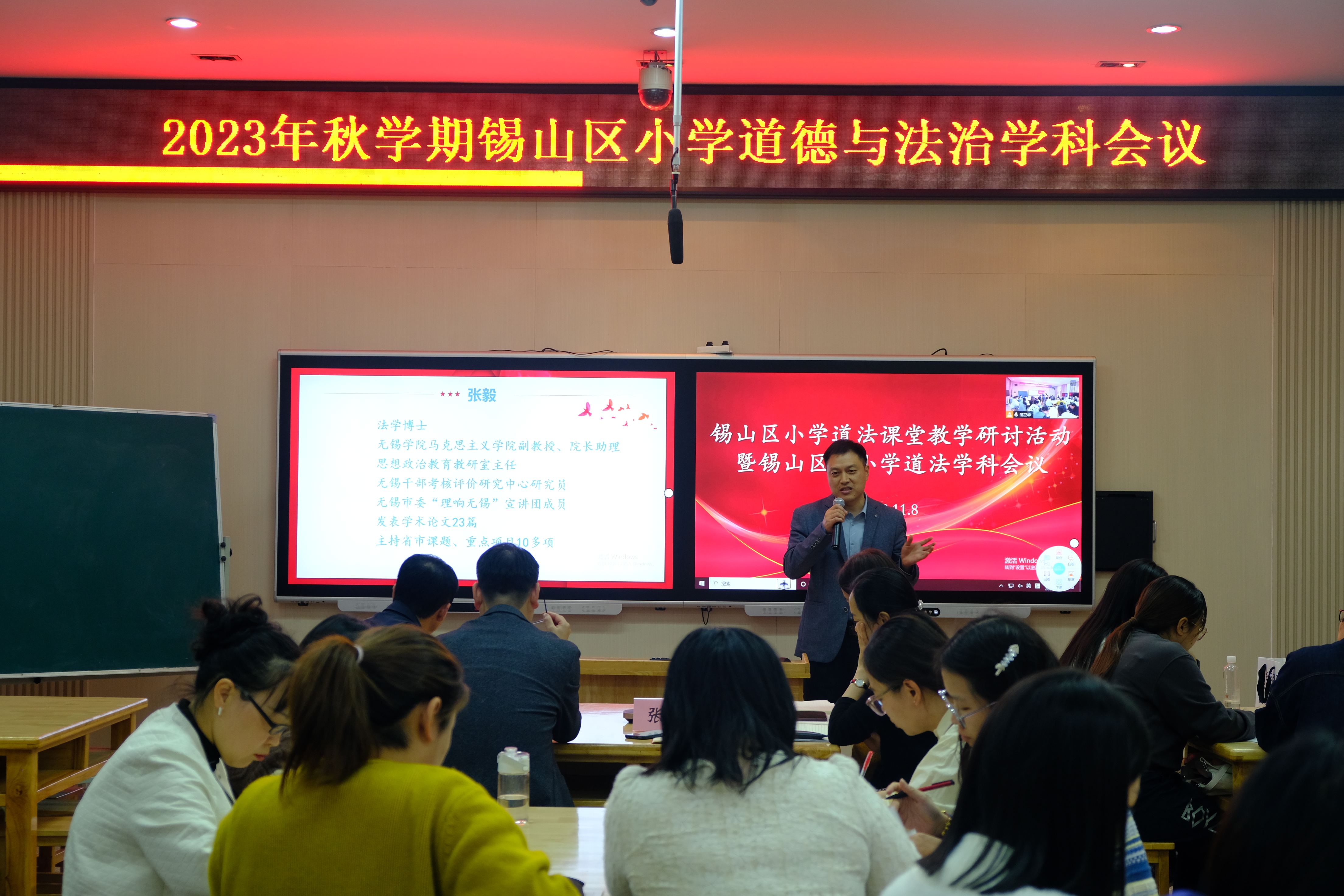 本次活动观摩了新疆哈拉奇乡希望小学布比那依老师的“道德与法治”课堂展示《选举产生班委会》、安镇实验小学王柯霖老师以及锡山实验小学沃佳丽老师课堂展示《实干成就梦想》,并与与会教师代表进行了教学经验交流。锡山区教师发展中心李涛老师作发言,指出本次活动是一次构建大中小思政共同体的碰撞教学,是打造思政教育追梦共同体、思想共同体的重要尝试,并为与会教师作题为《基于新课标的道德与法治教学新实践》讲座,从课标学习力角度出发,解读了最新版学科课程标准,重点阐释了思政学段教学目标的贯通性,强调思政课教学要做到一核引领,二式使用,三线联动,四层递进,把握“六经五维”课程内容布局,以大中小思政课一体化为思路推进“道德与法治”教育教学。张毅老师充分肯定了本次活动对于推进无锡大中小思政课一体化建设的意义,指出此次活动充分展现了各学段的教学优势和特色,是实现大中小学思政课贯通,开展一体化建设的有益探索,同时并作现场点评,指出大思政课建设意义深远,各位教师的课堂展示运用归纳总结、现场演绎、情景浸入法等多种教学方法,贴切学生心理结构,内容丰富、各有千秋又别出心裁,教学案例多样并切合当下时事热点,对教学资源的挖掘值得高校思政课教师学习借鉴,此行收获满满。会后,双方进行了下一步工作方案研讨,就如何扎实推进大中小学思政课一体化建设,筑牢大中小学思政课育人共同体,推动大中小学思政课高质量发展进行了交流。